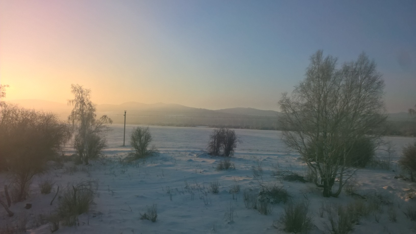 Irgendwann, als sich die sibirische Weite in ein dunkles Schwarz verwandelt hat, klappt Sergej seinen Laptop auf und lässt einen Horrorfilm, aus amerikanischer Produktion, laufen. Er schenkt mir Schwarztee mit Orangengeschmack ein und öffnet eine Packung Chips. Es ist ein gemütliches Kino, das Sergej herrichtet, während unter uns das Eisen der Räder klappert.