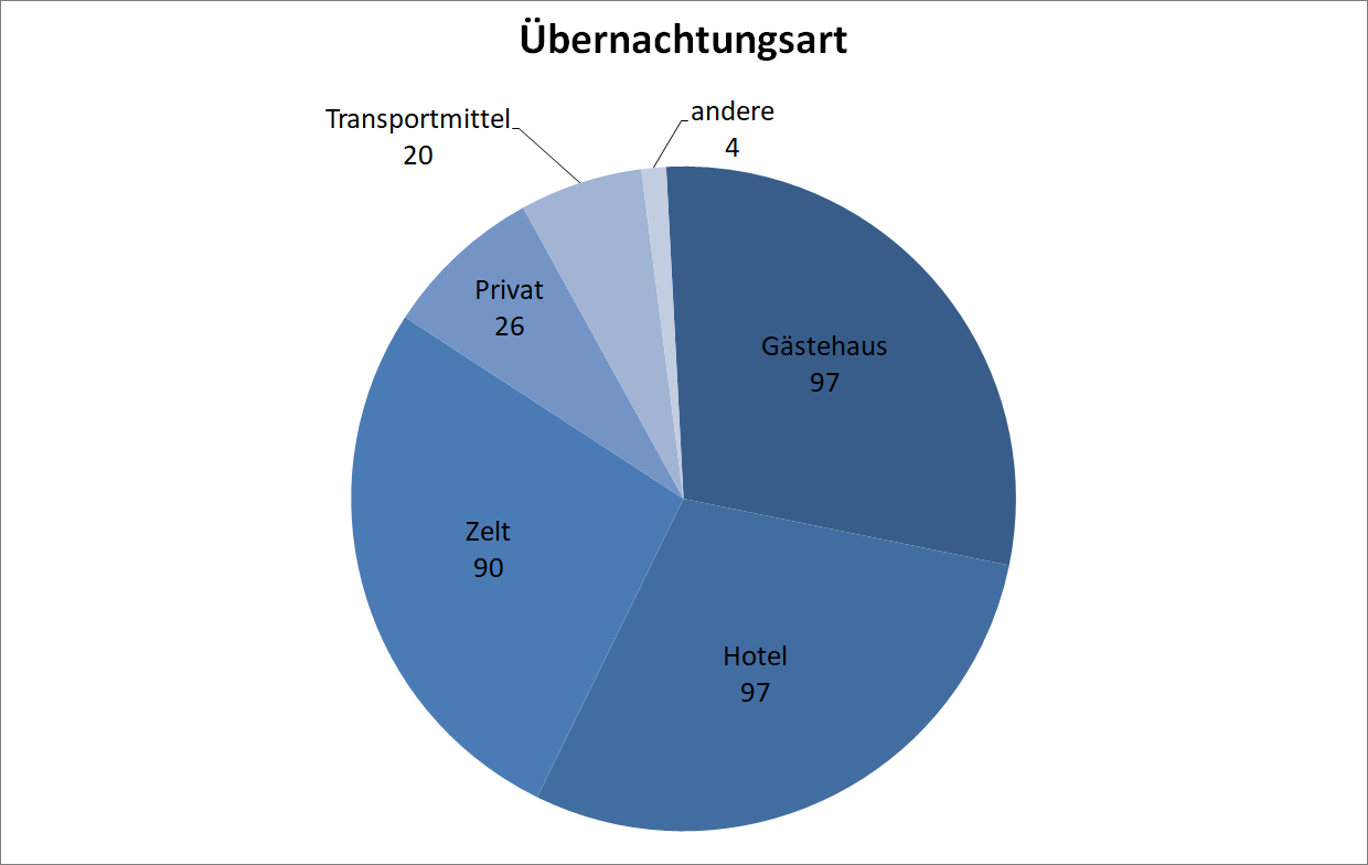 In Gasthäuser (Hostel, Ferienwohnungen), Hotels, Zelt (Campinghütte, Jurte) und Transpotmittel (Zug, Schiff, Auto) habe ich die meisten meiner Nächte verbracht.